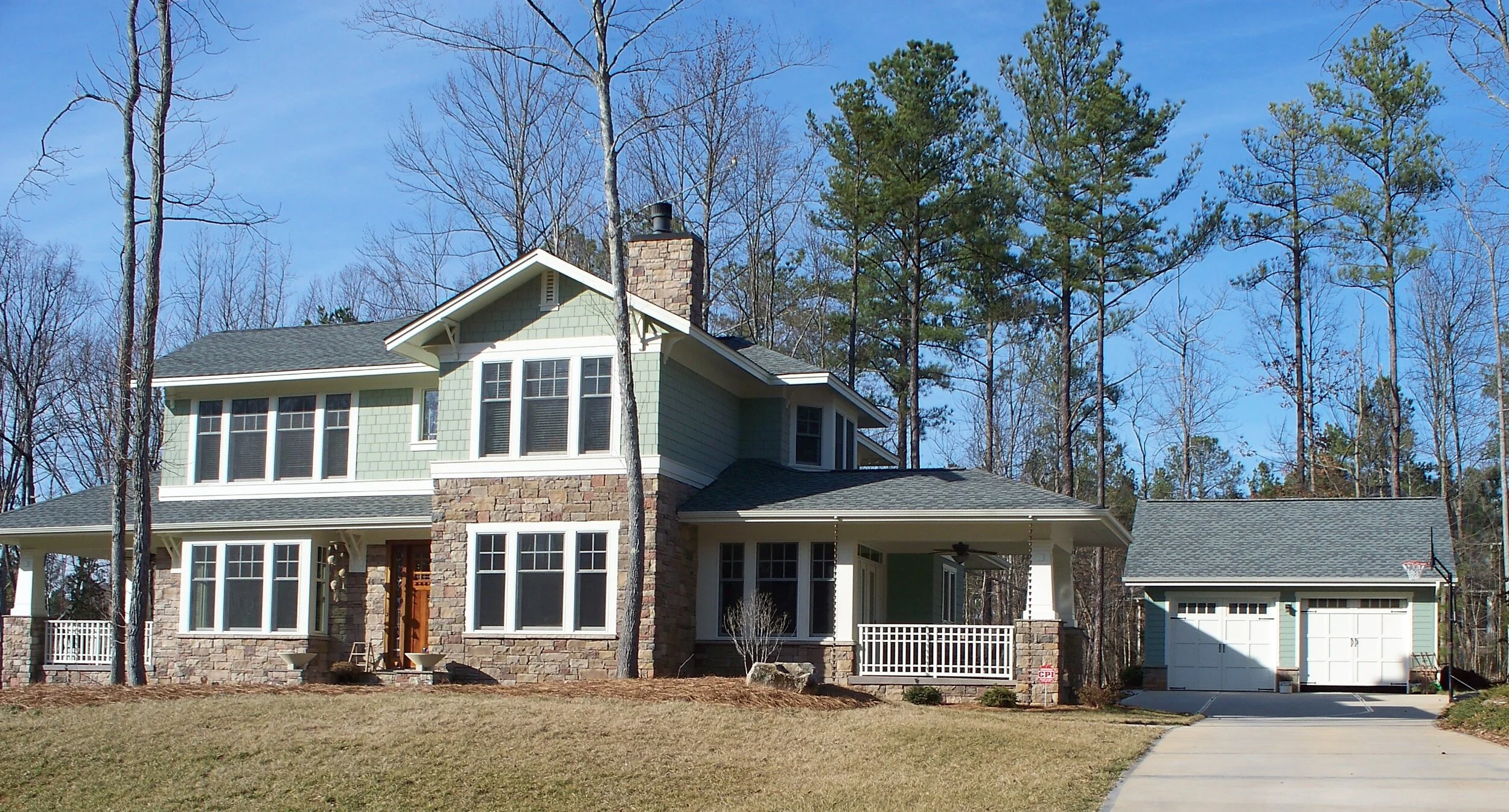 Stone, shake and cedar columns fashion this rustic story-&-a-half home.